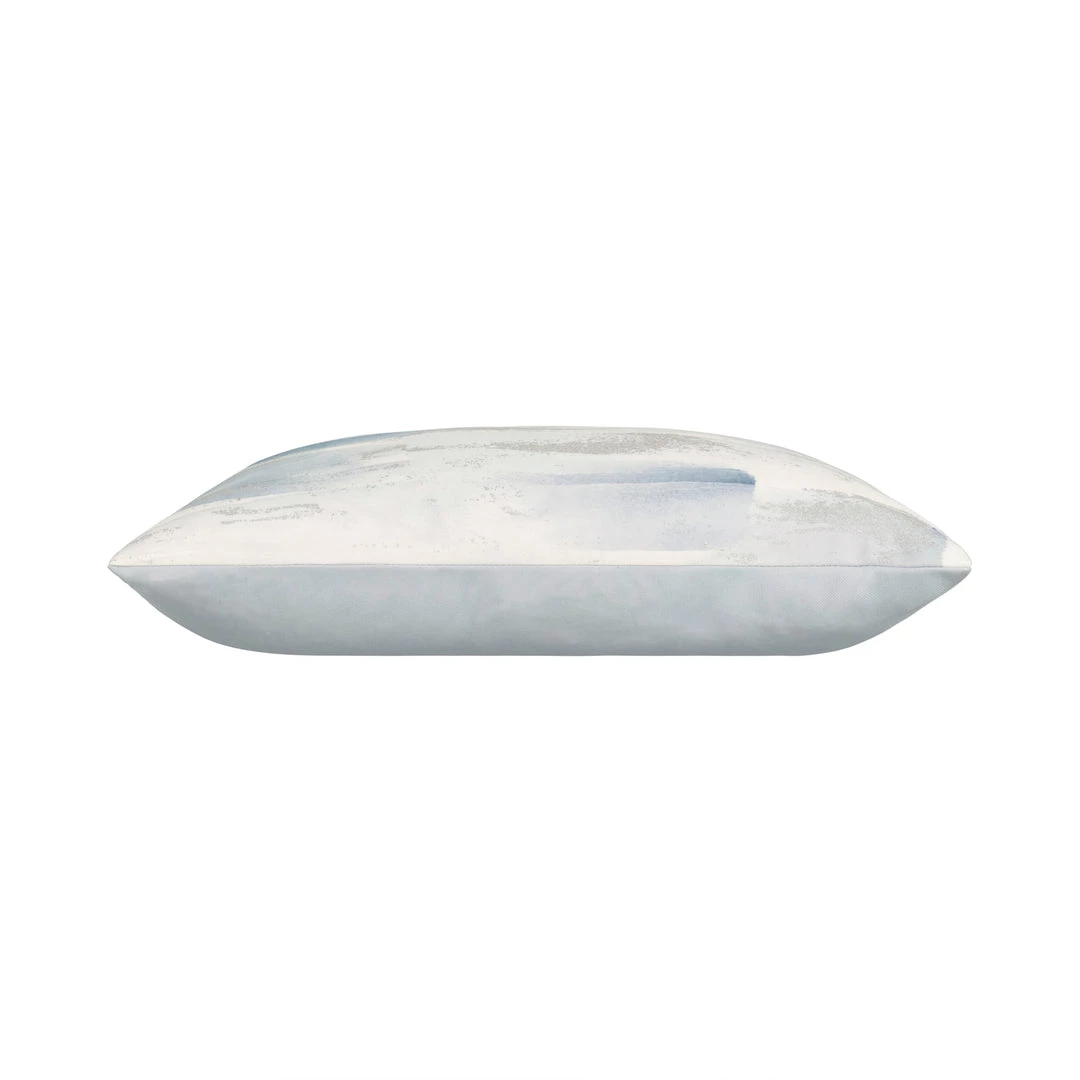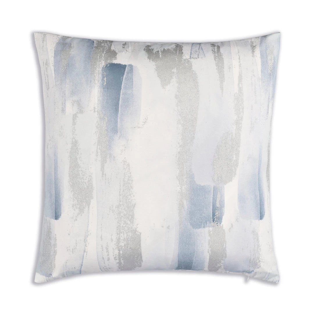 TSPUN Digital printed fabric in greys with outdoor silver metallic print. Outdoor compatible insert. Knife edge. 100% Polyester. Insert sewn in.