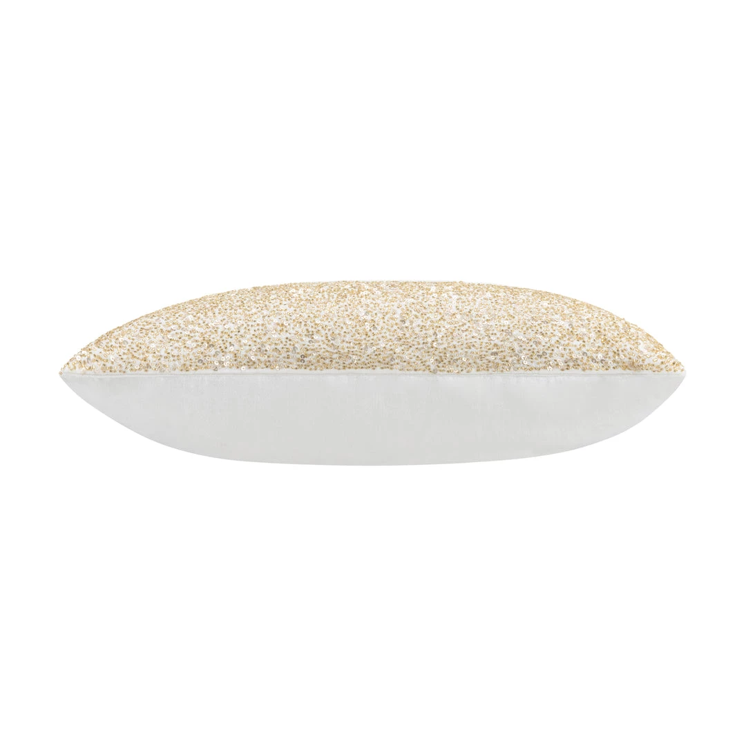 Ivory Velvet pillow 5″ top beaded in gold beads. Back is Ivory Velvet