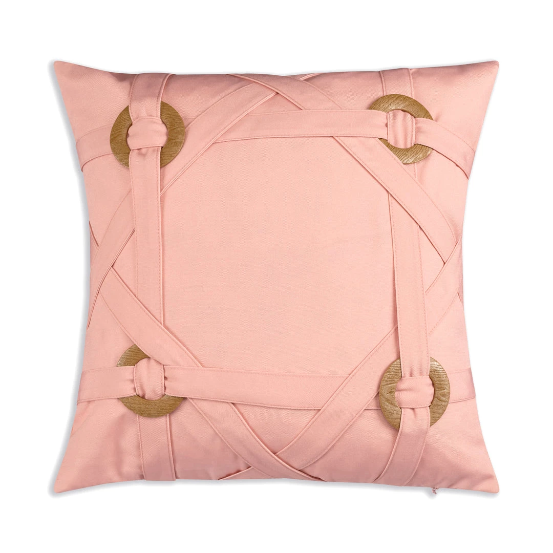 T/SPUN Outdoor pillow with wooden rings. Filled with outdoor fill and knife edge. 100% polyester. Insert sewn in.