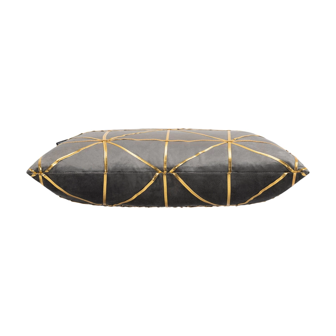 This Sera features a gold abstract ribboning on the front and back of this plush velvet pillow.
