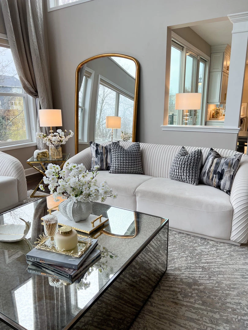 This Serena has a smocked patterned front and adds a soft glam to any room.