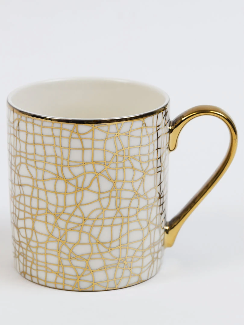 Description: These stunning gold and white mugs are perfect for your coffee station! Available in 6 designs, each sold separately.
