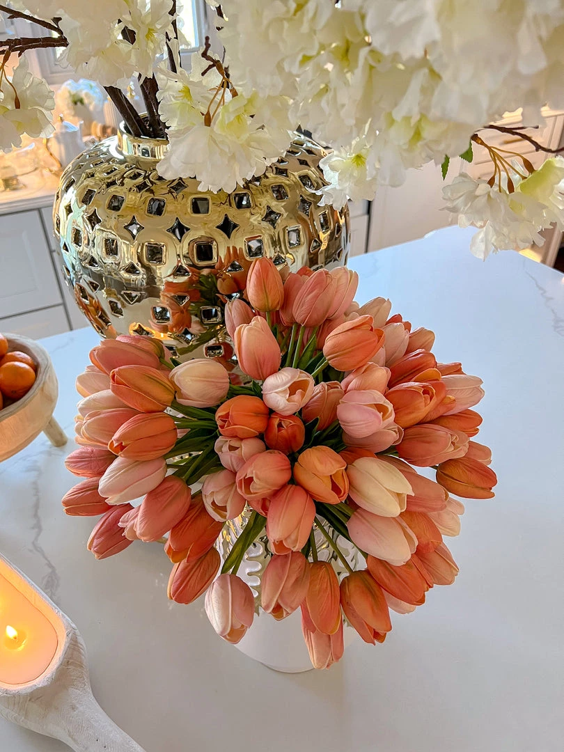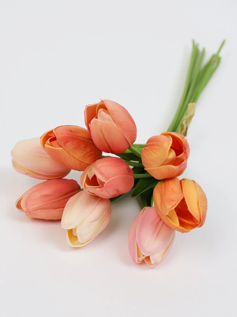 Description: These beautiful multi toned peach tulip bundles are a perfect staple piece for any home decor!