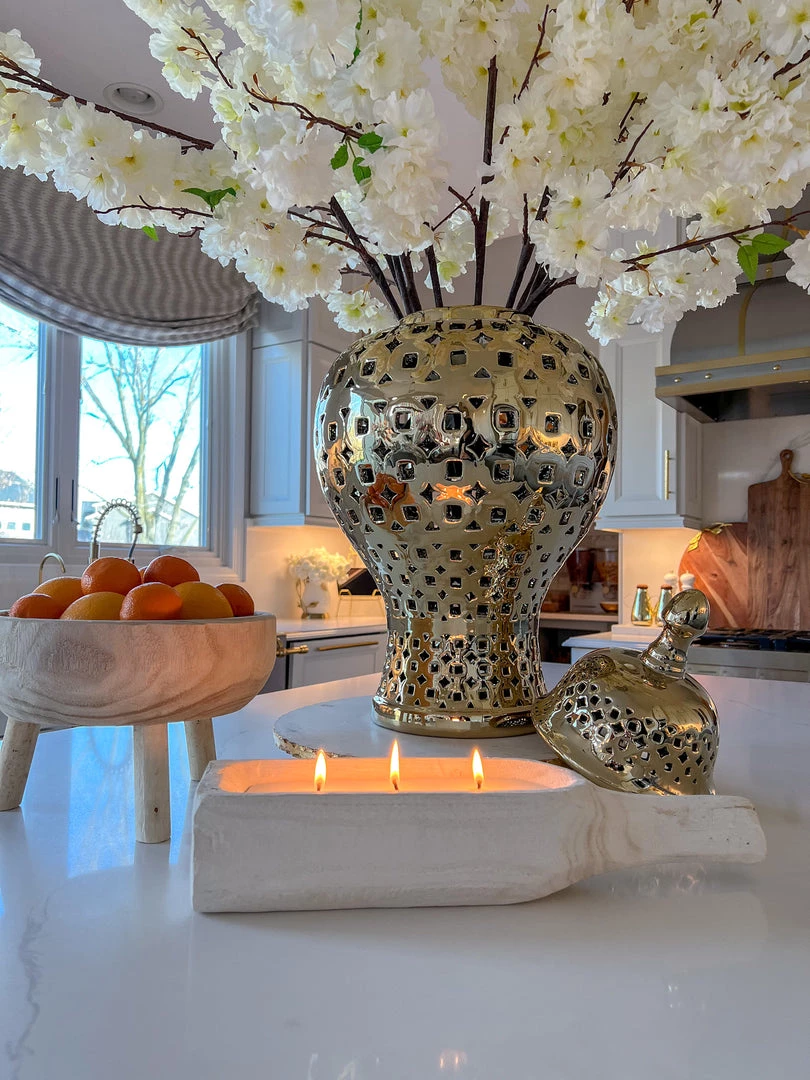 Inspire Me! Home Decor White Ceramic Candle Holder With Gold Elegant Details (2 Sizes)