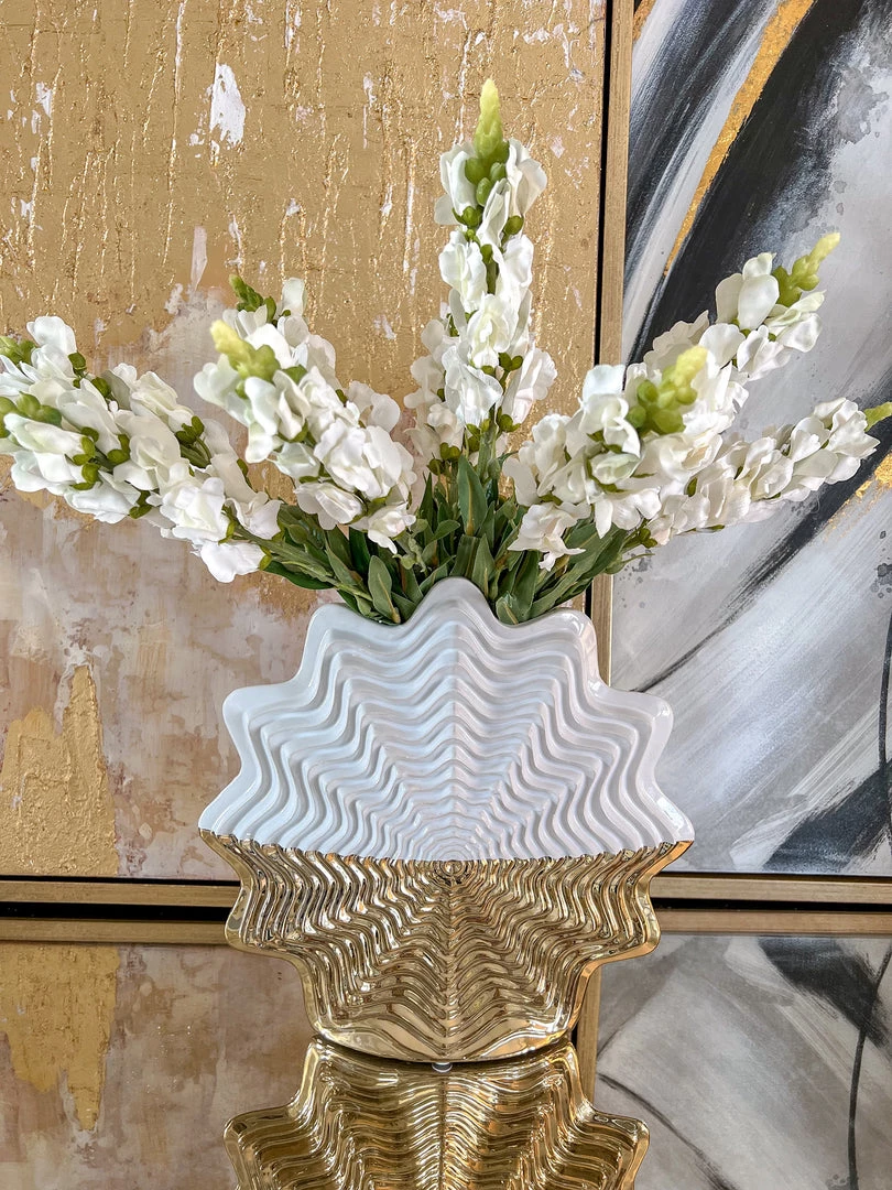 Inspire Me! Home Decor White Ceramic Vase With Stunning Gold Floral Detailed Center