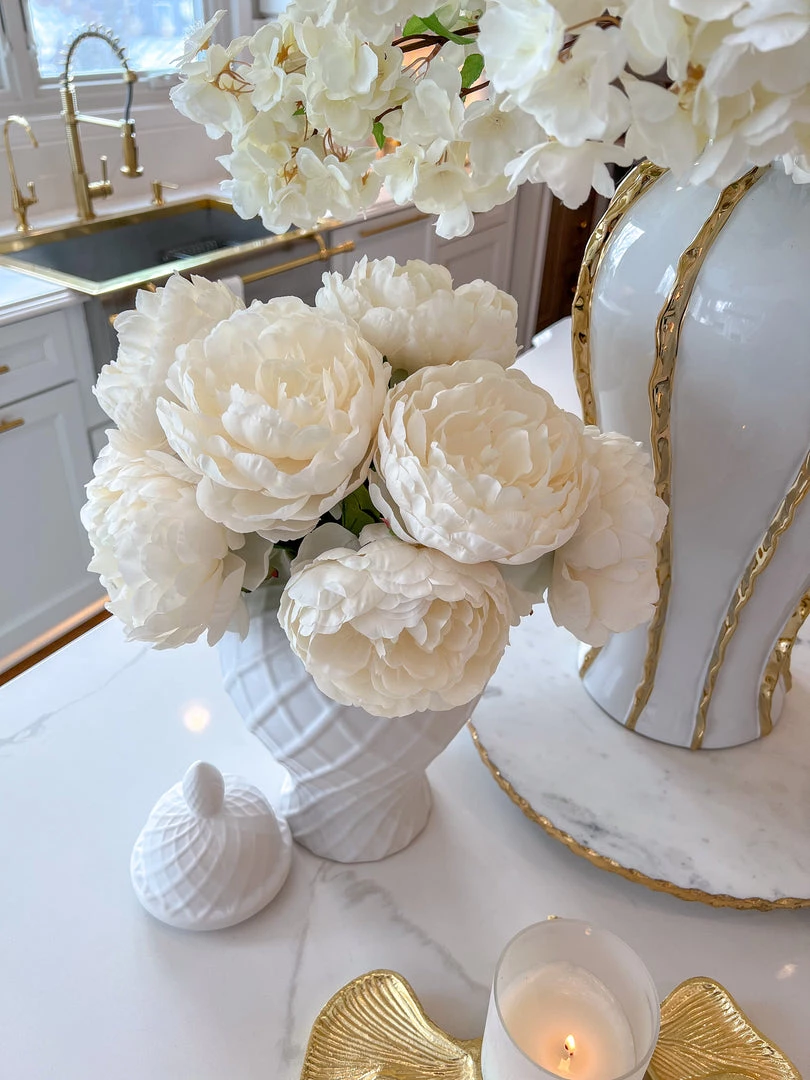 Description: This large Peony is perfect for spring! We love the creamy white tone which is perfect to style in your favorite vase!