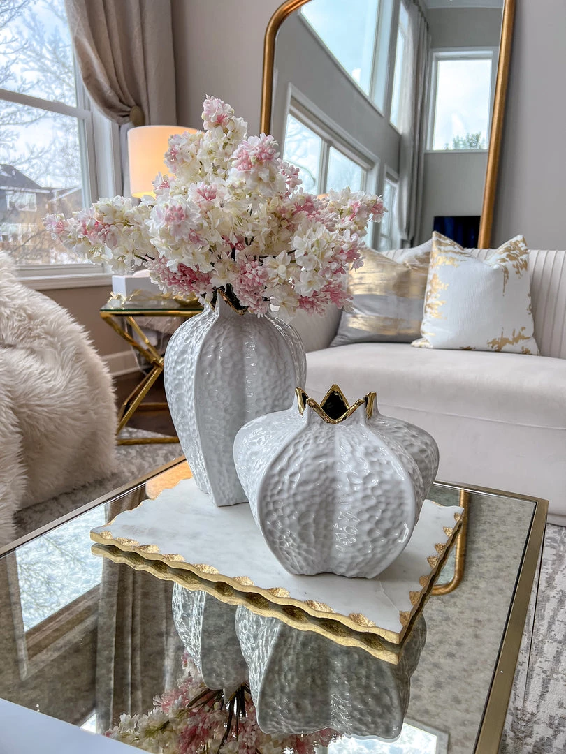 Inspire Me! Home Decor White Ceramic Candle Holder With Gold Elegant Details (2 Sizes)