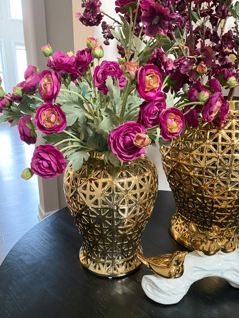 Description: Looking to add a pop of color to your home? These breathtaking deep purple ranunculus stems are a great way to add a dramatic touch!