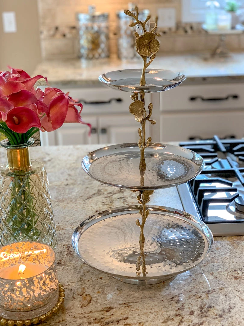 Inspire Me! Home Decor Round Marble Tray With Gold Edge And Metal Details