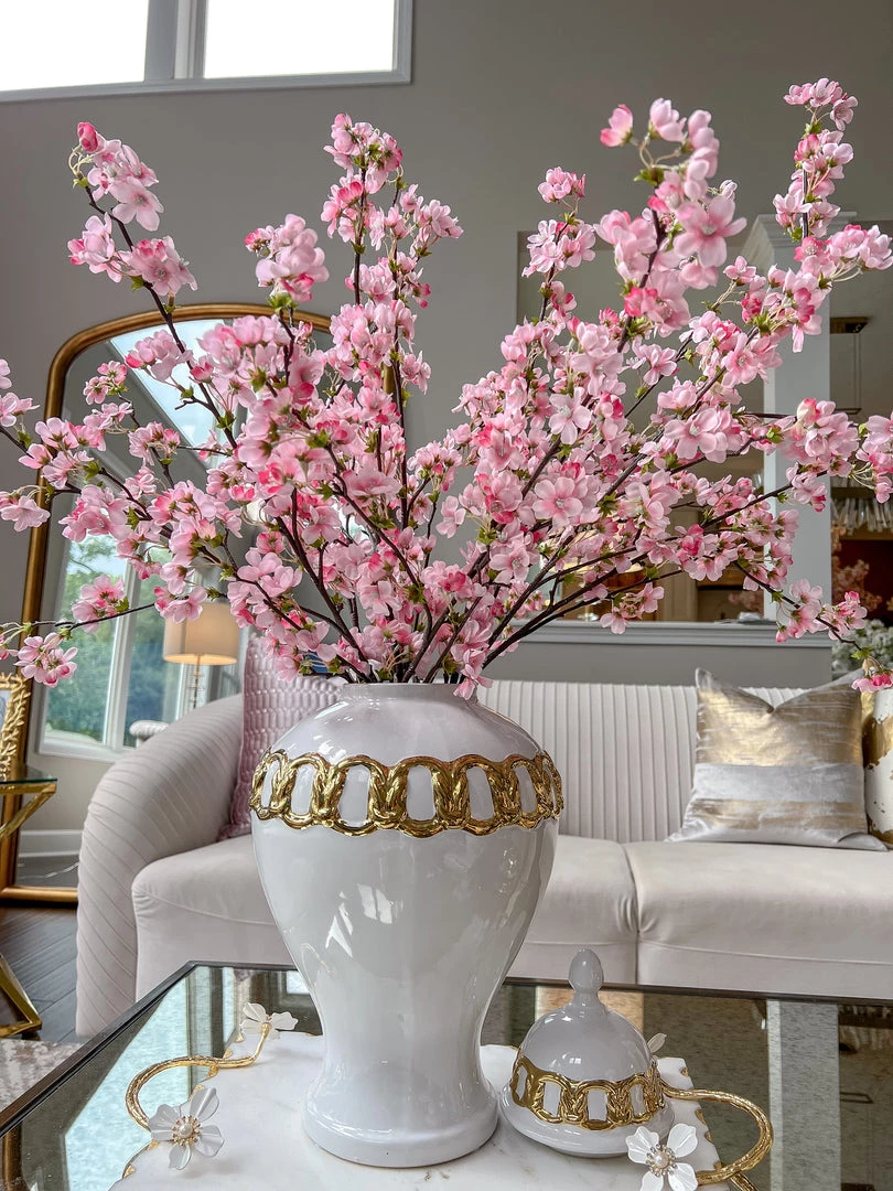 Inspire Me! Home Decor Large Rectangular Glass Tray With Cherry Blossom Details