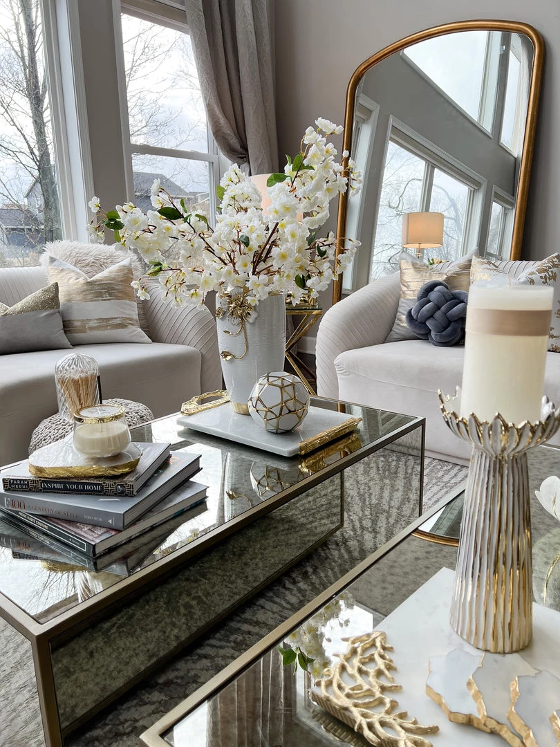 Inspire Me! Home Decor Gold Branch Centerpiece With 2 Glass Crackled Bowls