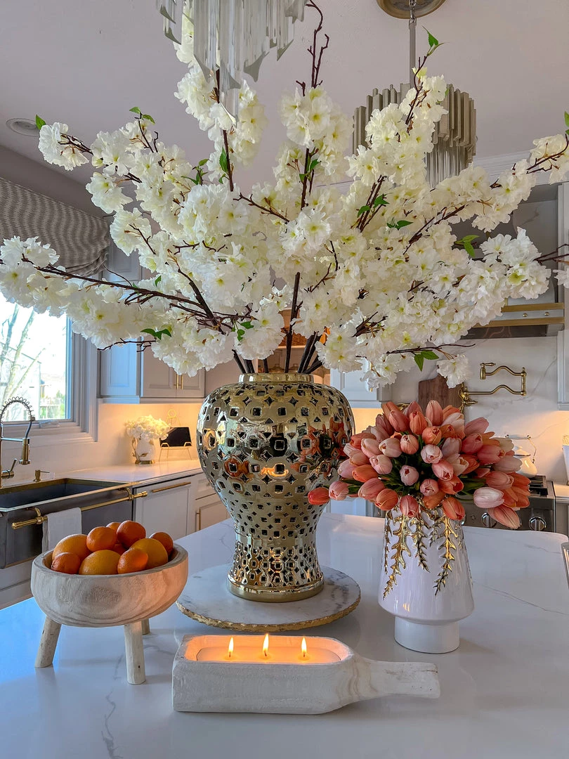 Description: This cherry blossom stem is the perfect accent for your home all year round! Perfect for a tall vase in an entryway and can be used all year round!