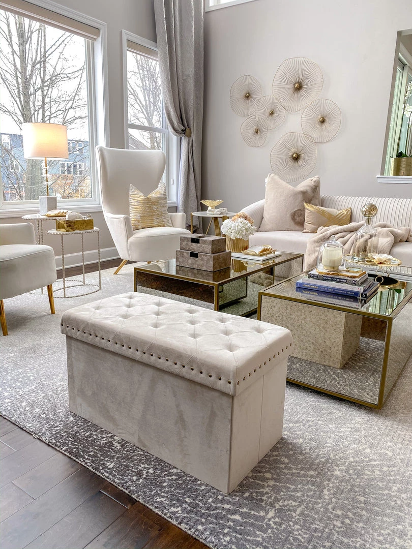 Material: High Density Foam, MDF Frame Panels, Metal Studs, 100% Polyester