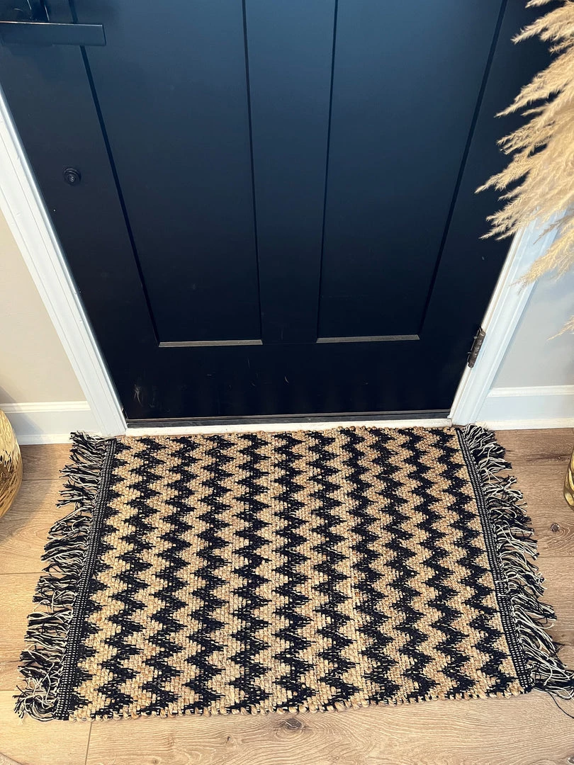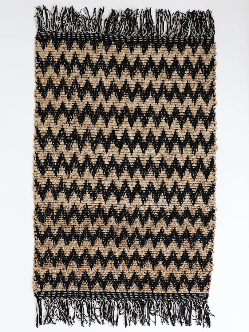 Description: This chevron fringed rug is perfect for layering! We love the natural colors.