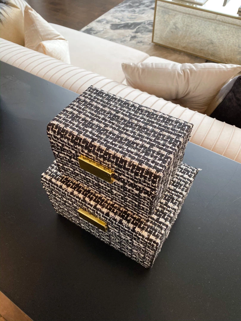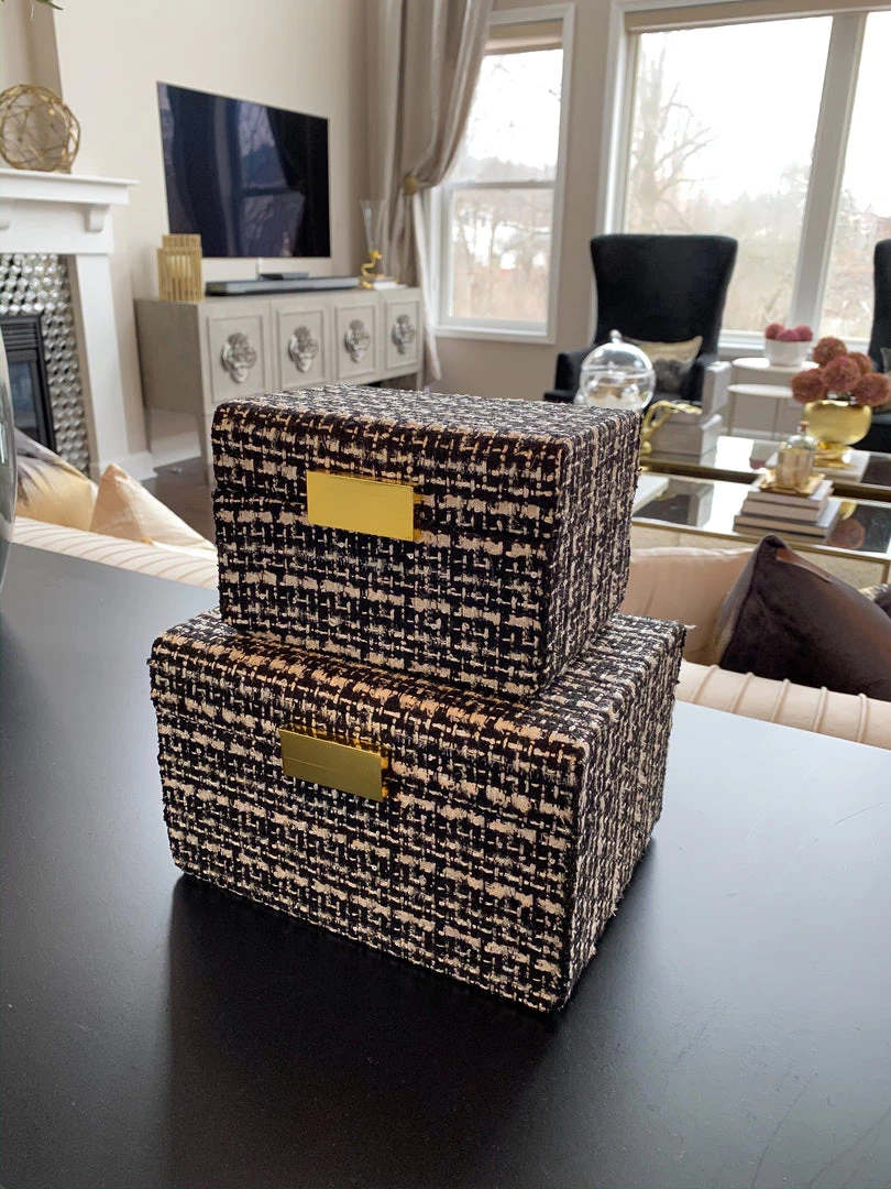 A box set is the perfect decor for any living or dining room. You can use them to store things like remotes or other household items without compromising your style!