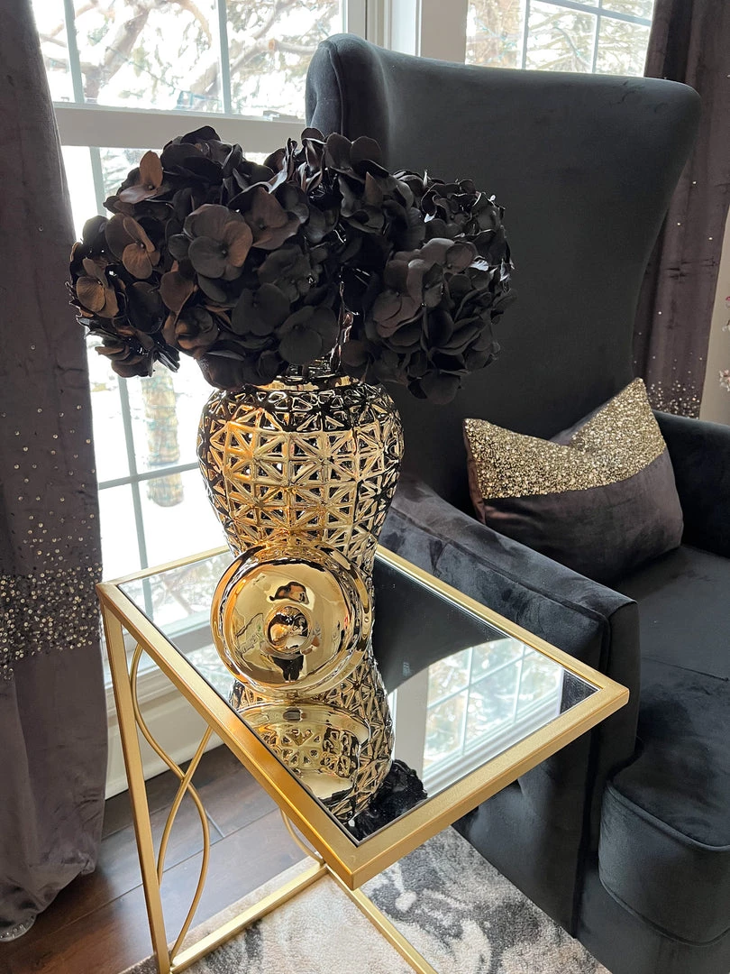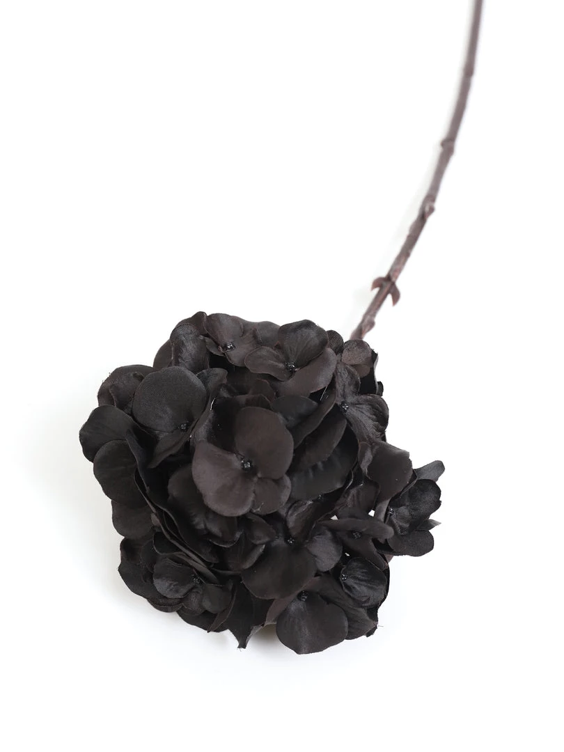 Description: These dramatic black hydrangea stems are the perfect statement piece for your home! Dark and mysterious, this offer an easy way to add a bold touch to any space!