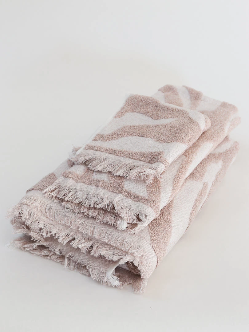 Description: These beautiful heathered patterened towels are absolutely stunning! We love the soft touch of cotton and the beautiful look of the stripe pattern detail. Available in blush pink and white! Each sold separately.