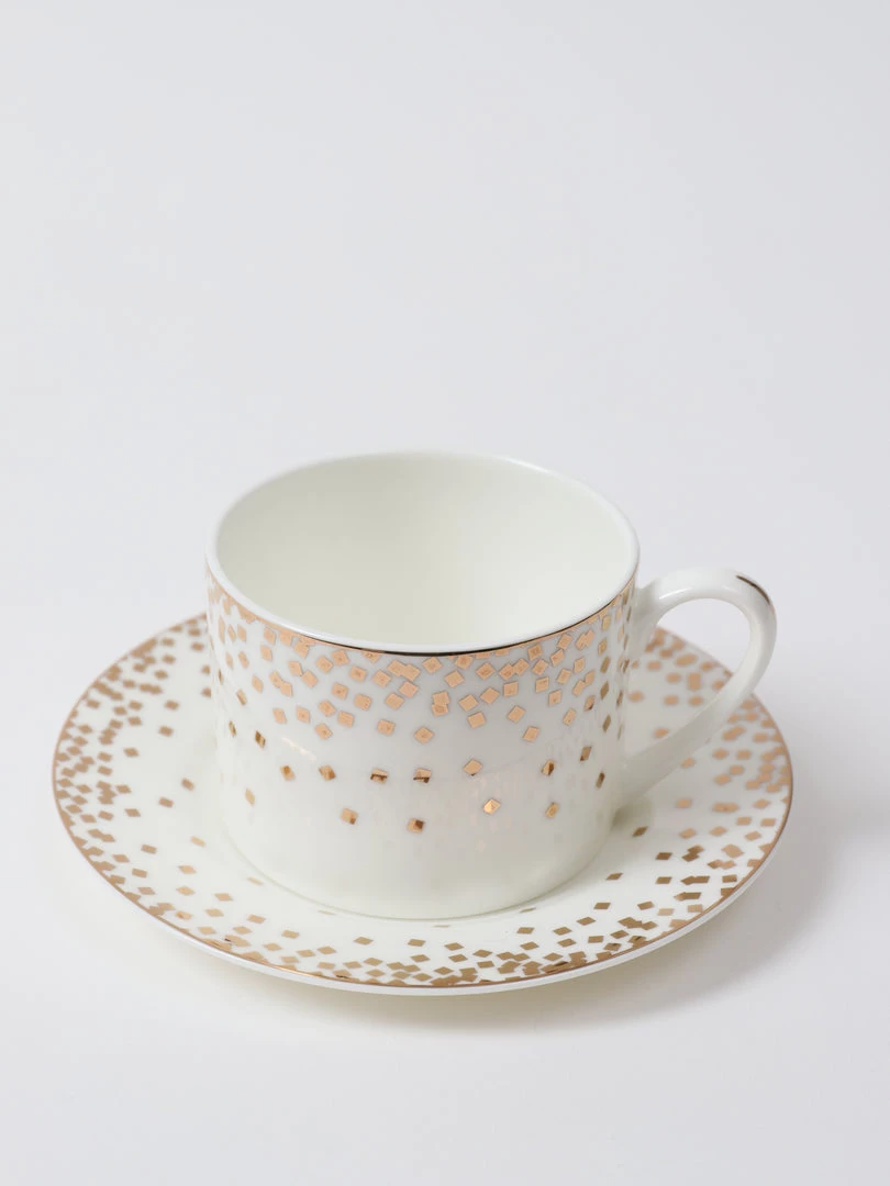 Description: What a gorgeous dotted bone china cup and saucer set this is! One set is one saucer and one cup.