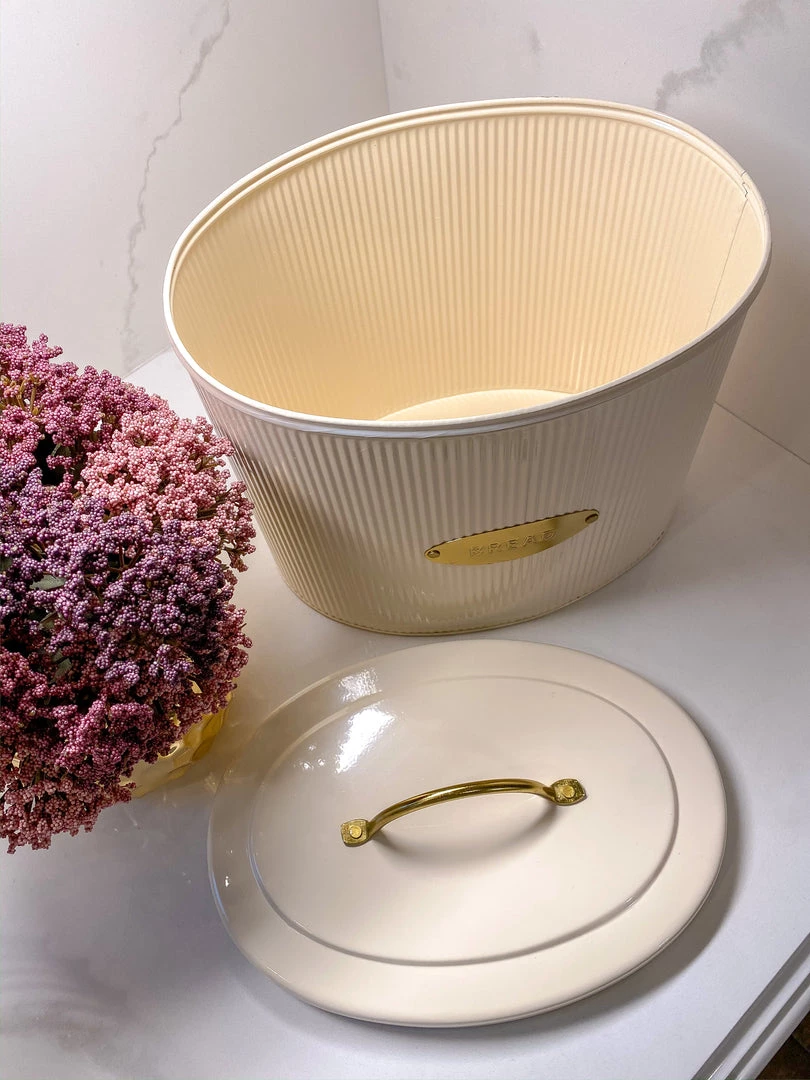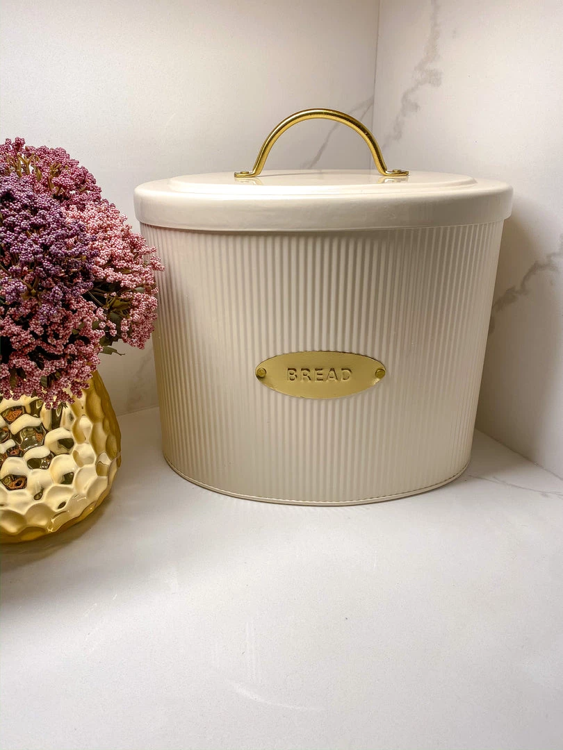 The cutest breadbox we have ever seen! Use these in your kitchen to hold your bread and snacks in a stylish way. Love the gold accents!