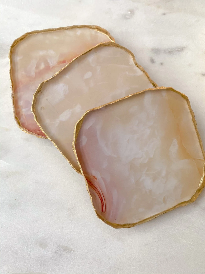 Keep your your tabletops water free with our glamorous gold trim coaster.