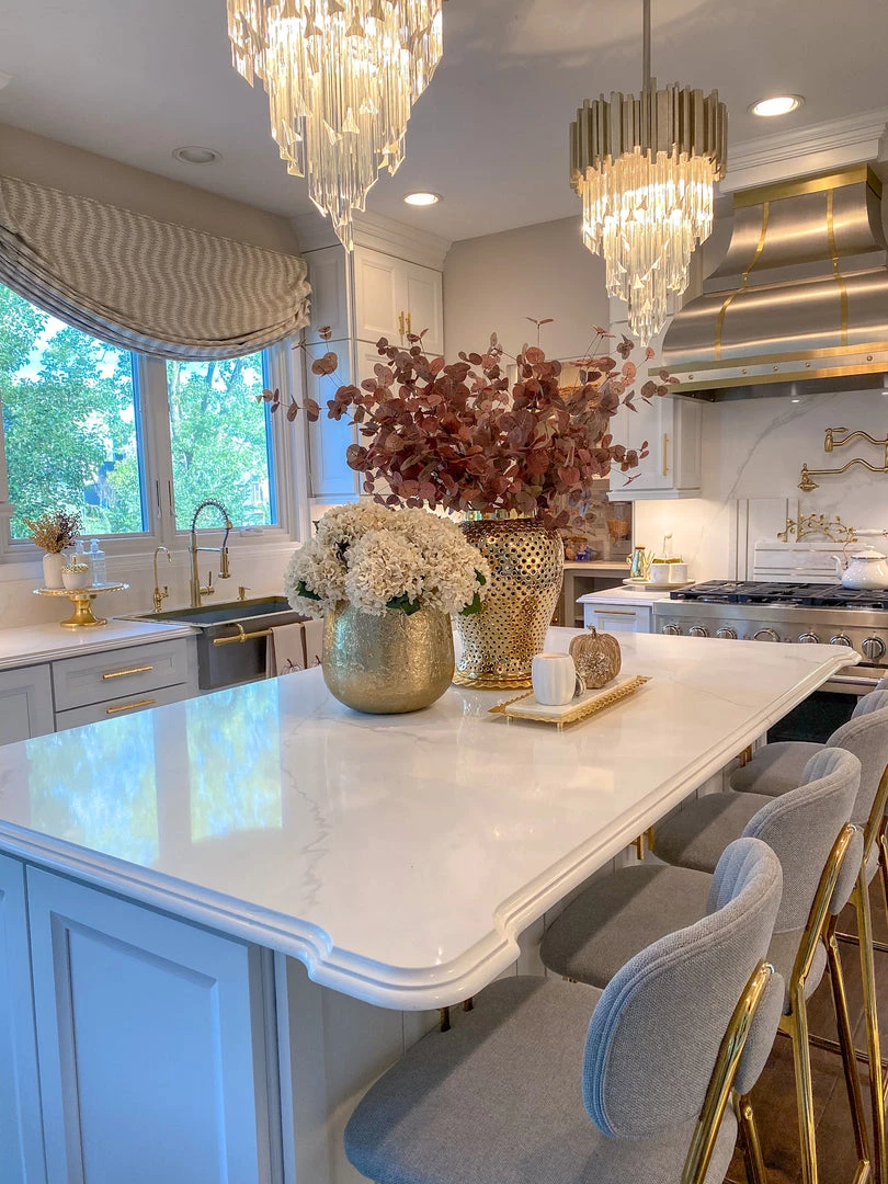 Inspire Me! Home Decor Round Marble Tray With Gold Edge And Metal Details