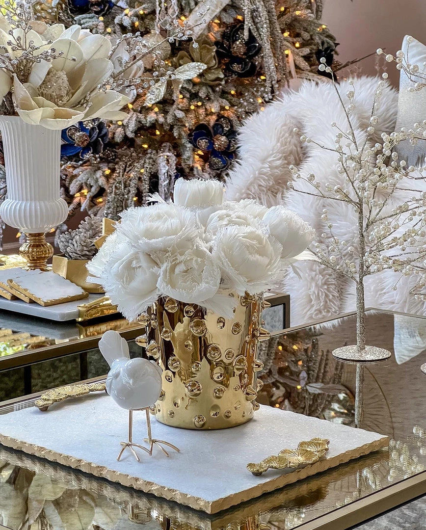 Description: These stems are white with snow or glitter around the tip of the petals. The feathered petals provide a clean and timeless look that can be used to decorate fro any holiday!