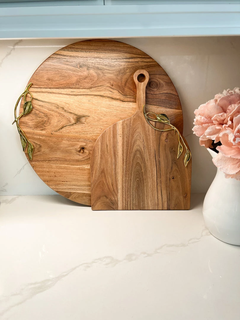 Description: This beautiful Charcuterie Board with its Gold Leaf design will add a unique elegance to your serving display! Stand it up and layer it with other boards!