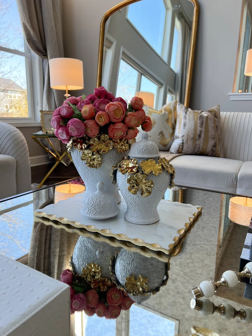 Inspire Me! Home Decor Large Rectangular Glass Tray With Cherry Blossom Details