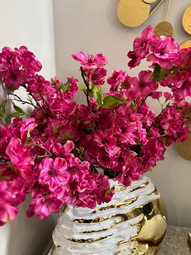 These faux cherry blossoms are great to style during any season! The stunning colors at a pop to any room.