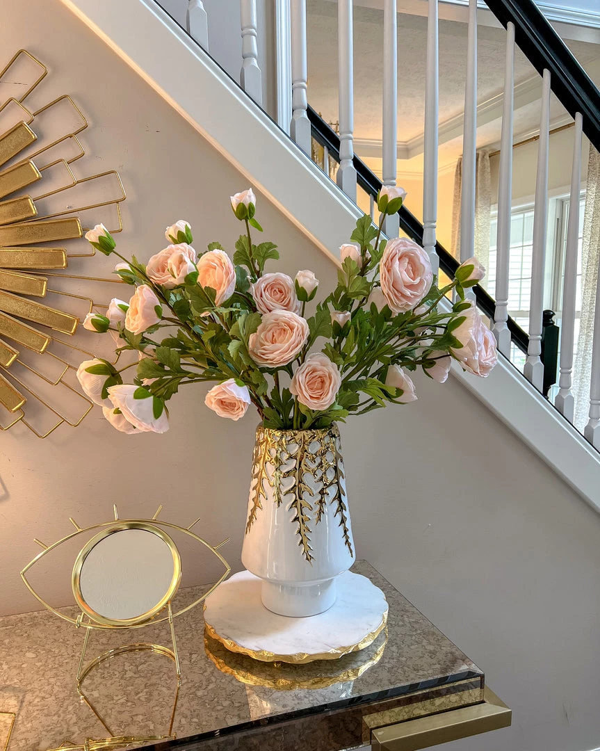 Description: This real touch peach faux floral stem is a stunning addition to your floral bouquet! The pink/peach color is a fun reminder of spring!
