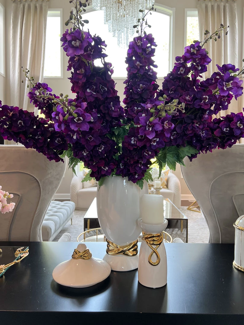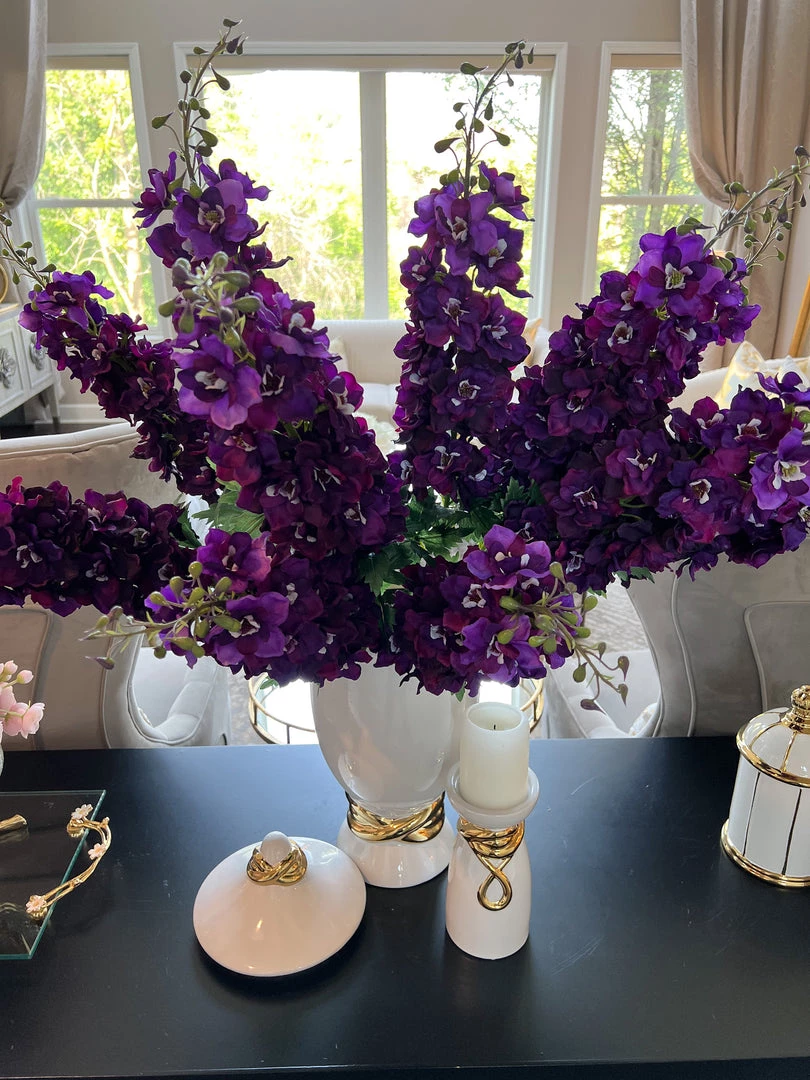 Description: This purple delphinium stem is a perfect floral for an elegant room!