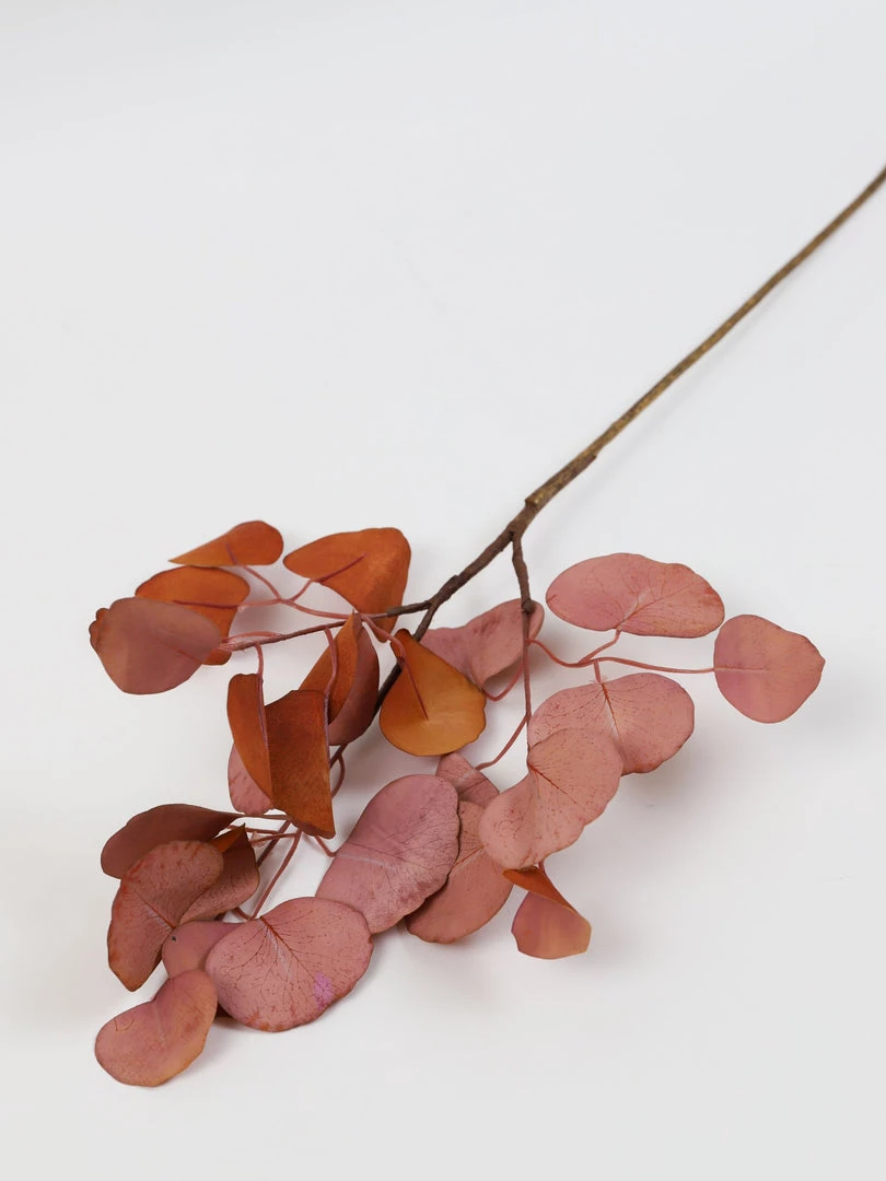 Description: This stunning faux eucalyptus stem is a beautiful addition to any vase. The beautiful beige pink color brings depth to your room and is perfect for any season! The flat leaves bring texture to your decor.
