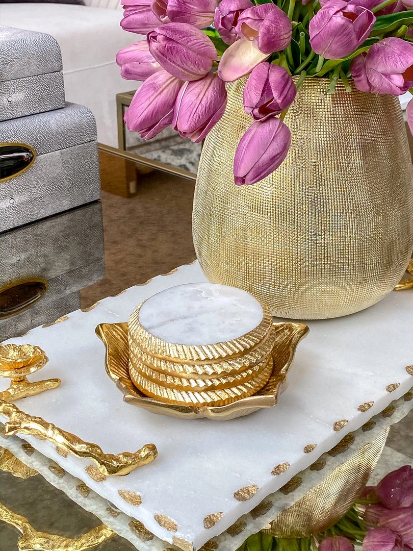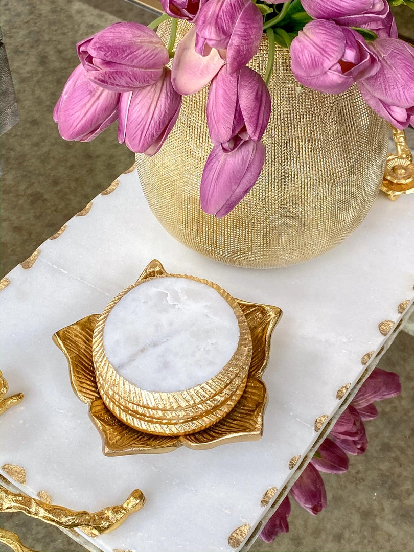 Inspire Me! Home Decor Round Marble Tray With Gold Edge And Metal Details