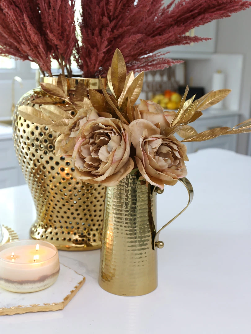 Inspire Me! Home Decor White Ceramic Vase With Stunning Gold Floral Detailed Center