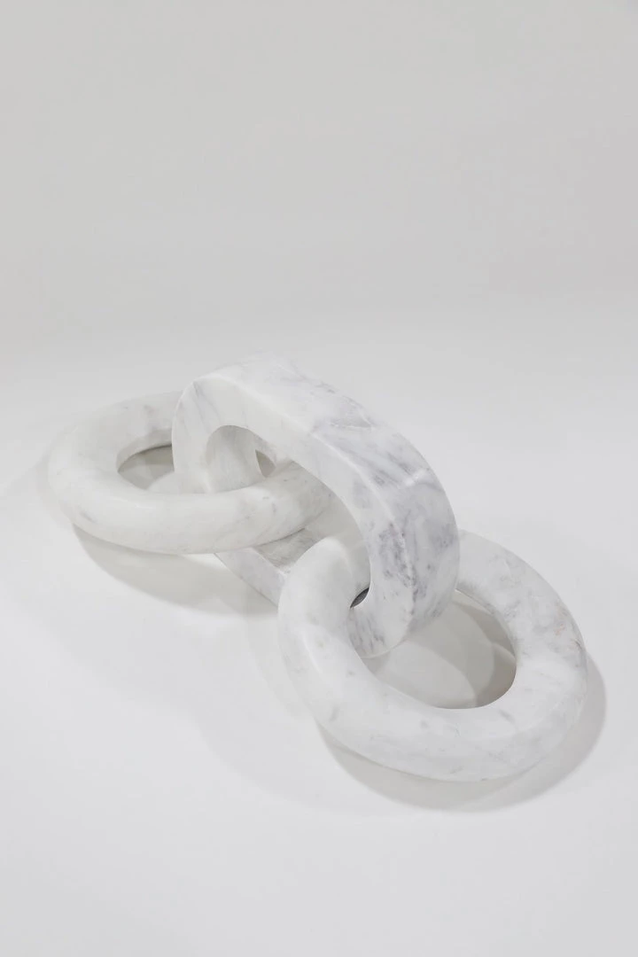 Description: This white marble chain decor is a great focal piece for your vignette. The geometric shape of the links make this a sleek and modern look, with the timeless elegance of marble.