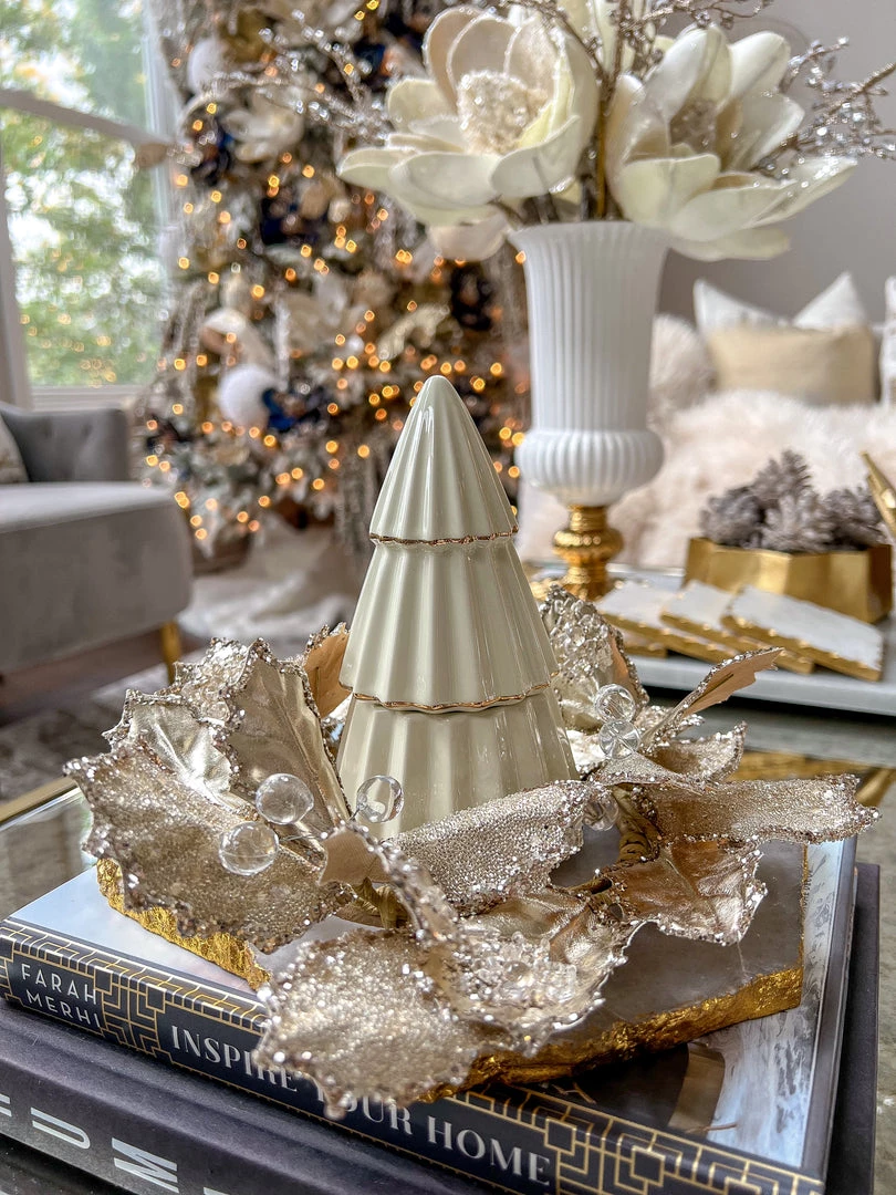 Inspire Me! Home Decor White Ceramic Vase With Stunning Gold Floral Detailed Center