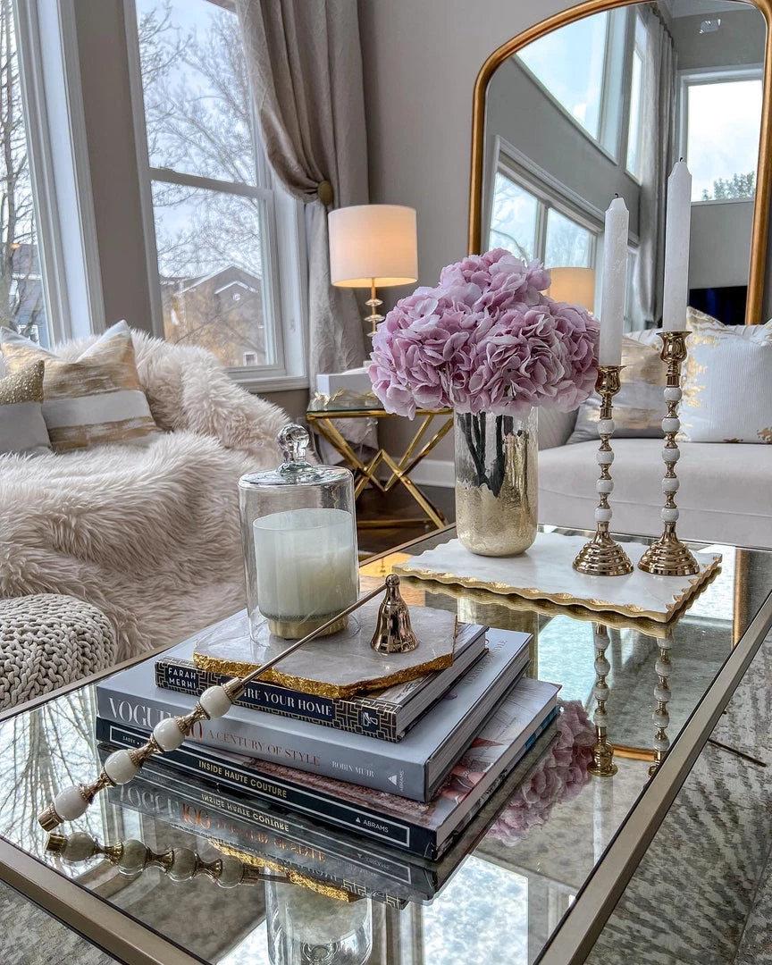Inspire Me! Home Decor Gold Metal Mirrored Side Table With Rack
