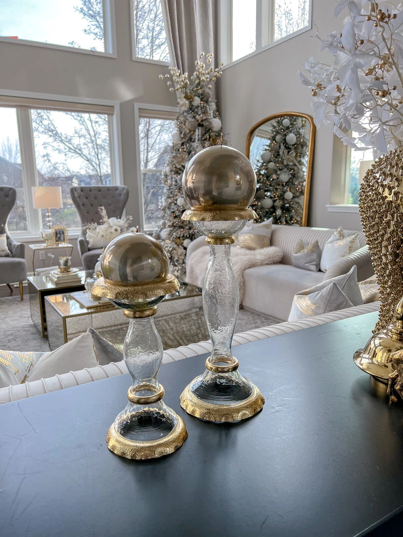 Description: These stunning glass and gold candle holders have a gold ripple edge border and will make a beautiful addition to your home decor!