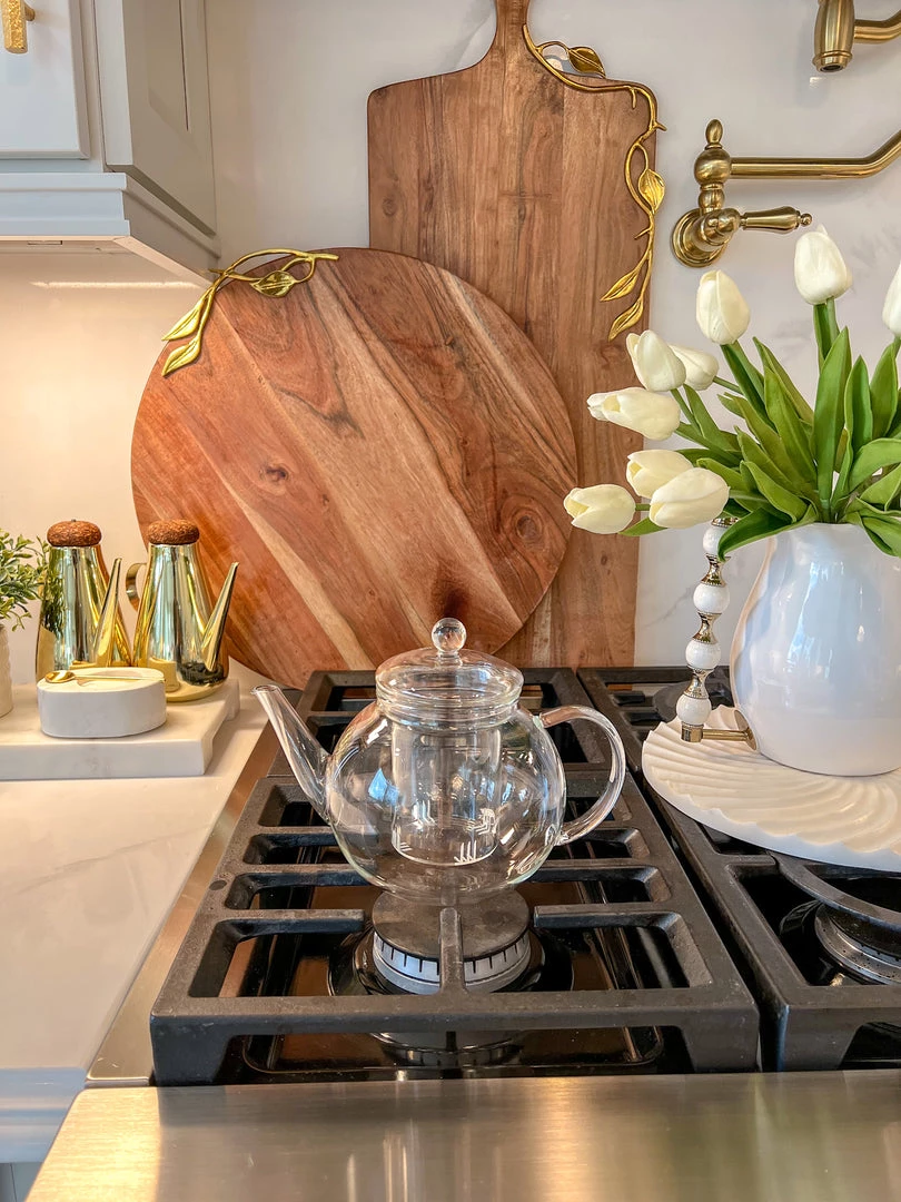 Heat-resistant borosilicate glass is stovetop, microwave, and dishwasher-safe.