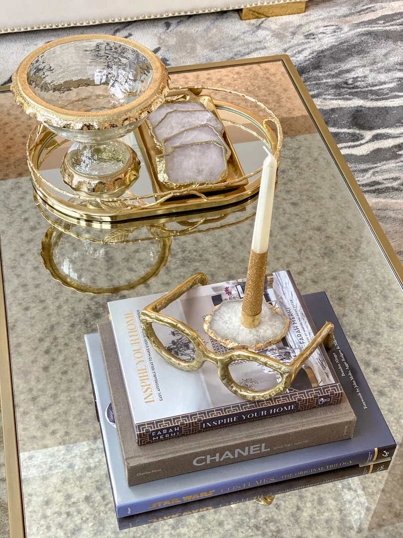 Inspire Me! Home Decor Gold Branch Centerpiece With 2 Glass Crackled Bowls