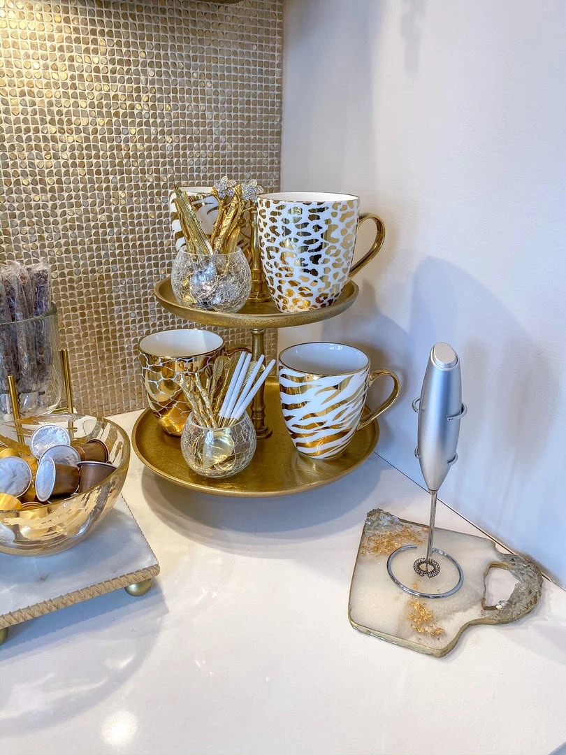 Description: This stunning gold stand is a great piece to add to your home decor! Use it to display your favorite trinkets or on it’s own!