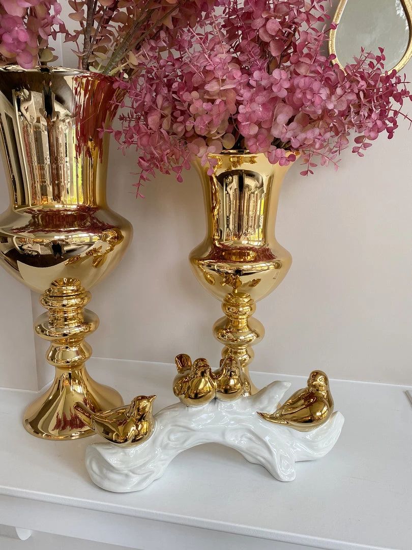 Description: We love this tabeltop decor! Delicate golden birds rest on a beautiful white branch and add a sense of calm and beauty to your home. A perfect accessory to brighten up any display!