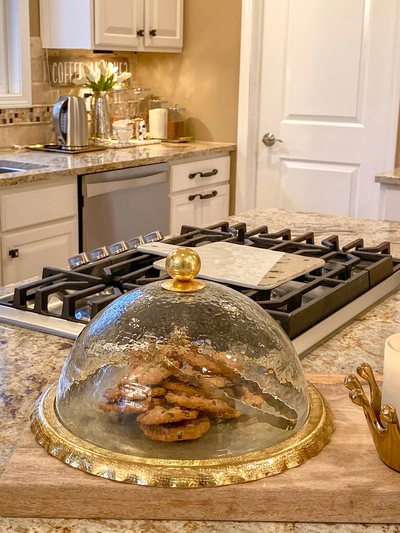 I’m in love with this cake dome! It’s the perfect centerpiece for my dessert table. The gold border makes it look so luxurious.