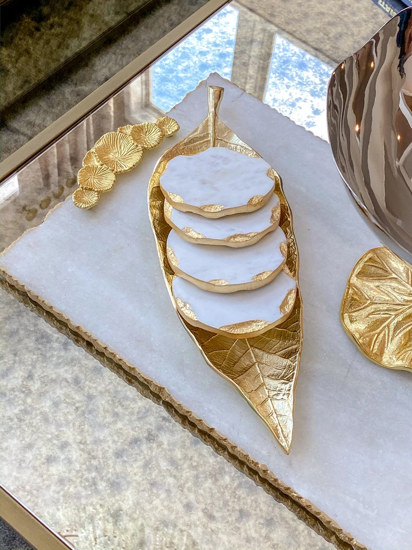Beautiful Marble coasters featuring a gold edge.