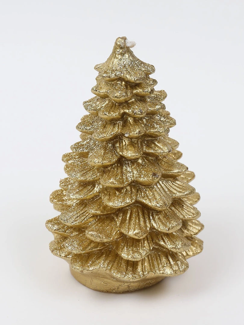 Description: What could be more festive than a gold Christmas tree candle for this holiday season! This candle is unscented and comes in two sizes. Priced for one candle.