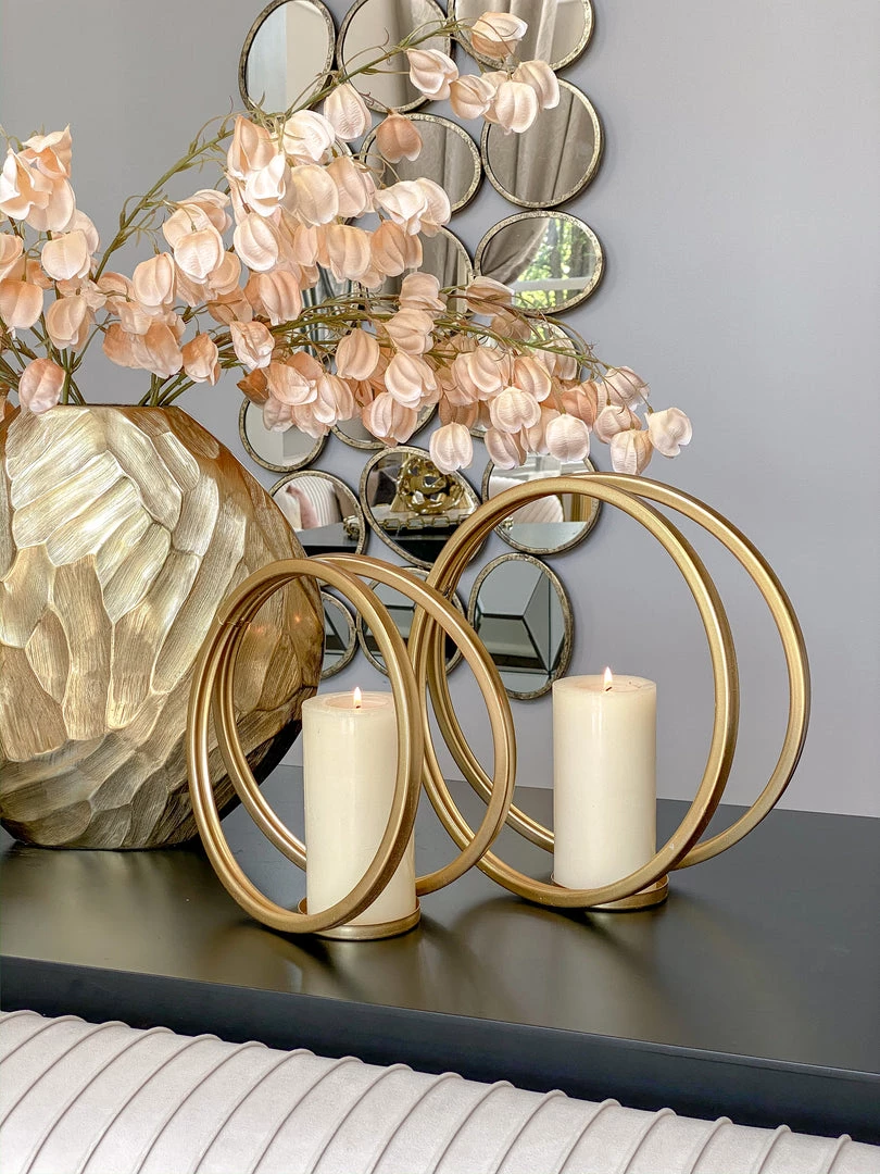 Description: This beautiful set of three candle holders are a simple and elegant way to show off your favorite candles! Each candle holder comes with a glass pillar to keep your candles safe.