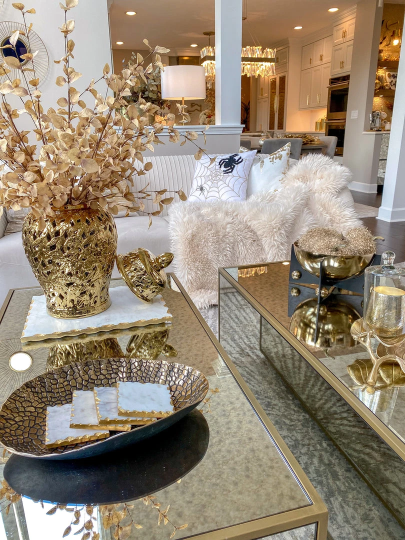 Inspire Me! Home Decor Gold Branch Centerpiece With 2 Glass Crackled Bowls