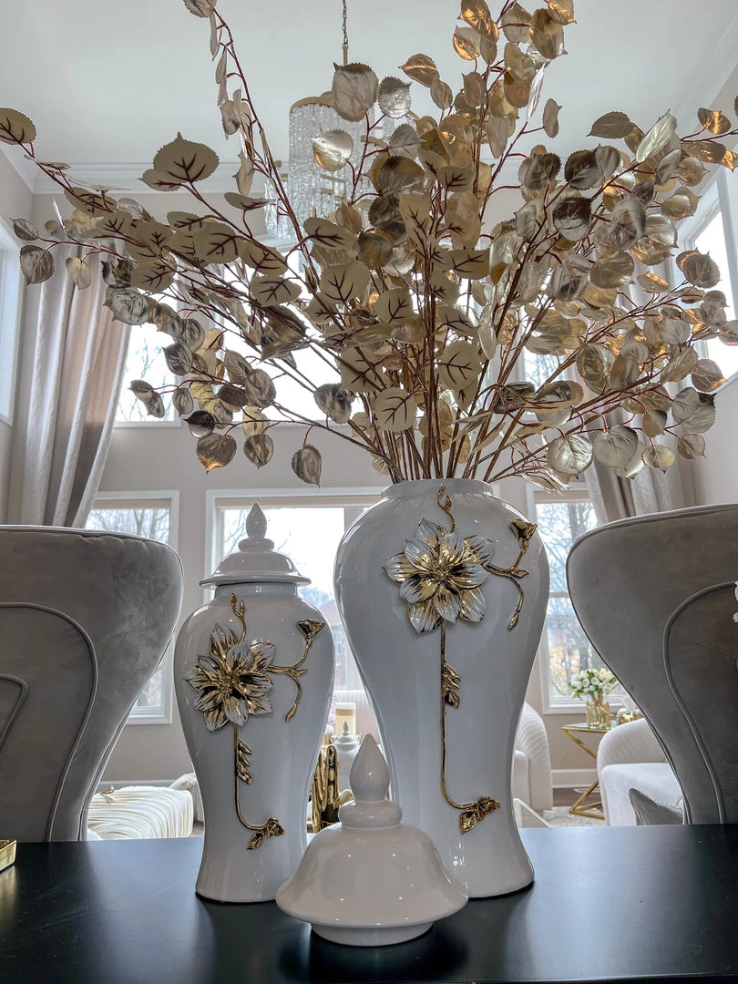 Inspire Me! Home Decor White Ceramic Jar With Elegant Gold Details (2 Sizes)