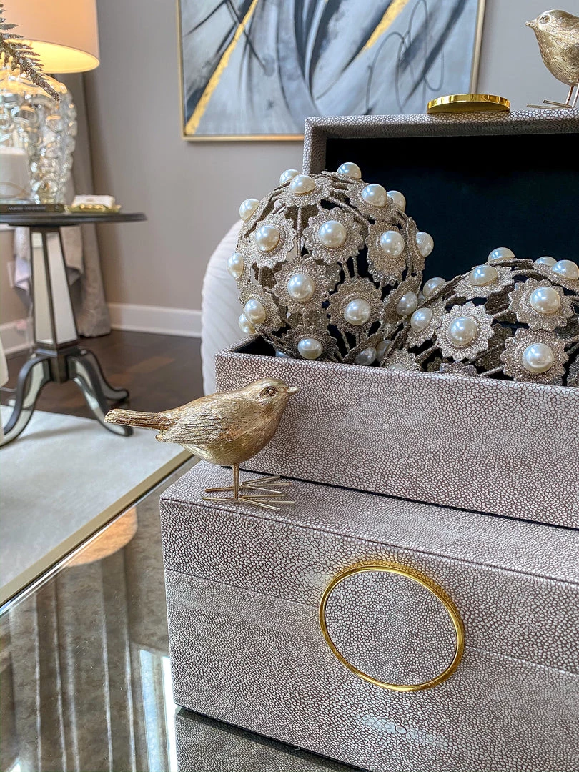 These pearl ornaments are a fun shape and are stunning on your tree or in a decorative bowl on your coffee table. The champagne gold color is a show stopper for the season.