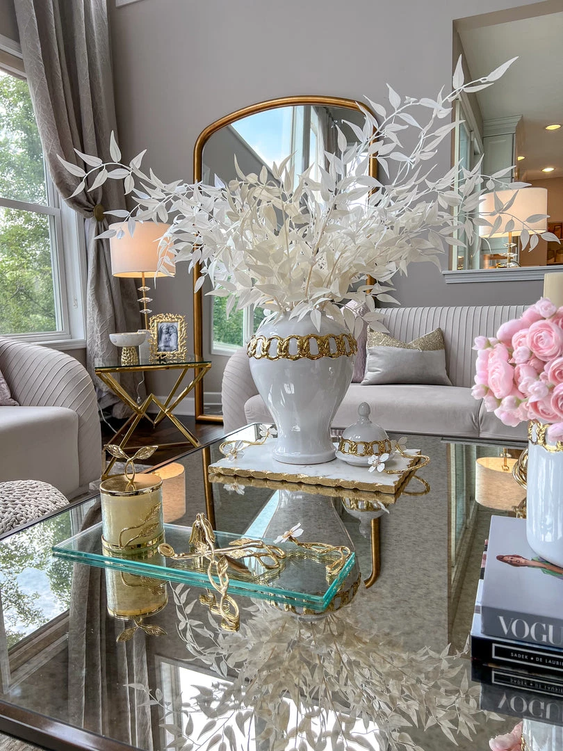 Description: This is a stunning gold ensemble. Style with your favorite IMHD trivet or marble tray and make a gorgeous vignette!